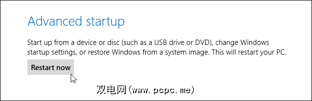 向下滚动并单击“高级启动"下的“立即重新启动"按钮。您的计算机将重新启动。