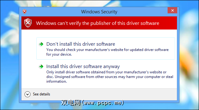 现在,您可以像在以前版本的Windows上一样安装未签名的驱动程序。如果您尝试安装未正确签名的驱动程序,Windows会提醒您,但是您会看到一个“仍然安装此驱动程序软件"选项。