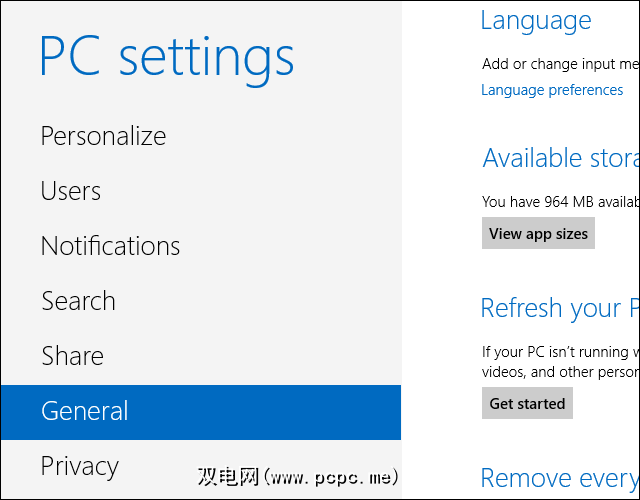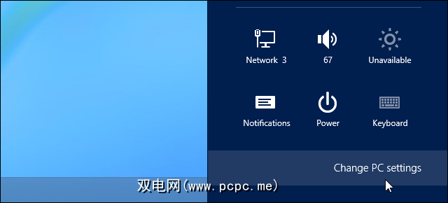 选择“设置"超级按钮底部的“更改PC设置"选项。