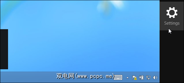 首先,打开“设置"超级按钮。您可以通过将鼠标移到屏幕的右下角并单击“设置"来执行此操作。如果您使用的是支持触摸功能的PC,请从右侧向内轻扫,然后点击“设置"。按Windows键+ I,直接使用键盘快捷键打开“设置"超级按钮。