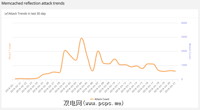 所得到的放大称为带宽放大因子,其攻击放大范围是原始请求的10,000到52,000倍。 (Akami认为Memcached攻击“可能会放大50万以上!")