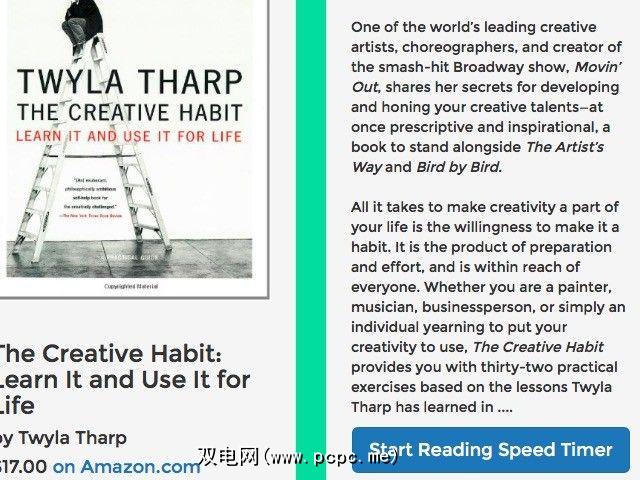 该网站在其网站上列出了超过1200万本书数据库。使用站点搜索在阅读列表中查找任何书籍的名称,然后从搜索结果中选择它。将会弹出该书的专用页面。查看侧面的示例文本,单击开始速度读取计时器按钮,然后进行阅读。