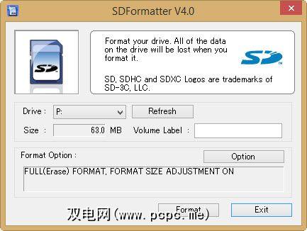 确保您拥有的卡超过4 GB。选择选项时,在Windows上使用 Format Size Adjustment ; 覆盖格式(如果使用的是Mac OS X)。如果您使用的是Linux,请改用gparted。