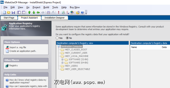 使用InstallShield之类的复杂工具创建安装程序包时,应用程序开发人员可以自定义安装。例如,他们可以指定它将安装在Windows上的Windows版本,设置要在``开始''菜单和/或桌面上创建的快捷方式,或者收集用户信息,例如名称,地址等。下图显示了用于设置是否创建或更新Windows注册表项的屏幕。