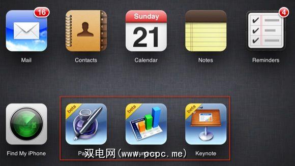 要为iCloud使用iWork,基本上可以在所有Apple设备上启用iCloud。如果您已发布iWork for iCloud的测试版,则应该在iCloud帐户的iCloud帐户的仪表板上看到所有三个应用程序图标。
