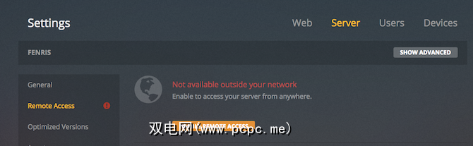 最后,重新启动路由器,回到Plex服务器设置,然后尝试再次启用远程访问。如果您已按照上面的定义更改了面向公众的端口号,请再次单击 Show Advanced (显示高级)按钮,然后选择手动指定公共端口。
