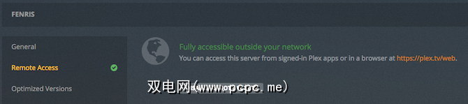过一会儿,您可能会看到一条绿色消息,提示“可以从网络外部完全访问。" 。如果是这种情况,恭喜!您可以跳过本教程的其余部分,因为现在您只需登录您的Plex帐户就可以在任何浏览器或客户端应用程序中远程访问任何Plex库。