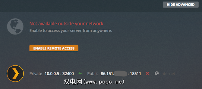 最简单的方法是返回到Plex远程访问设置页面,然后单击顶部的“显示高级"按钮。对。您会看到一些额外的信息,例如: