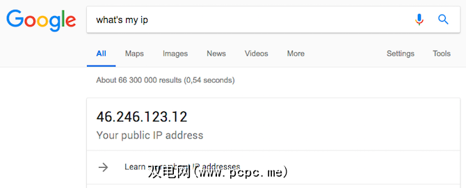 在继续之前,有必要澄清一些总是困扰初学者的事情:在谈论IP地址和端口时,我们需要清楚是在谈论内部网络(连接到路由器的设备)还是外部网络(互联网)。每个连接到互联网的路由器都有一个公共的外部IP地址。您可以从字面上询问Google“我的IP是什么?",它会告诉您: