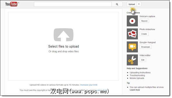 1。在您的YouTube页面上,点击顶部搜索栏旁边的上传按钮。如果您迷路了,请点击此处的“上传"页面直接从此处跳转。