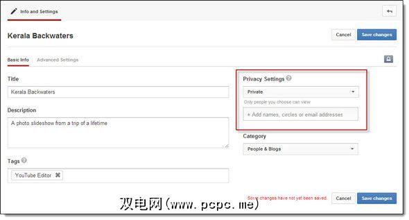7。您也可以从“信息和设置"更改“隐私"。您可以选择公开,将其保留为不公开,或者选择私有并仅与少数人共享。 “信息和设置"页面还允许您添加标题和说明。