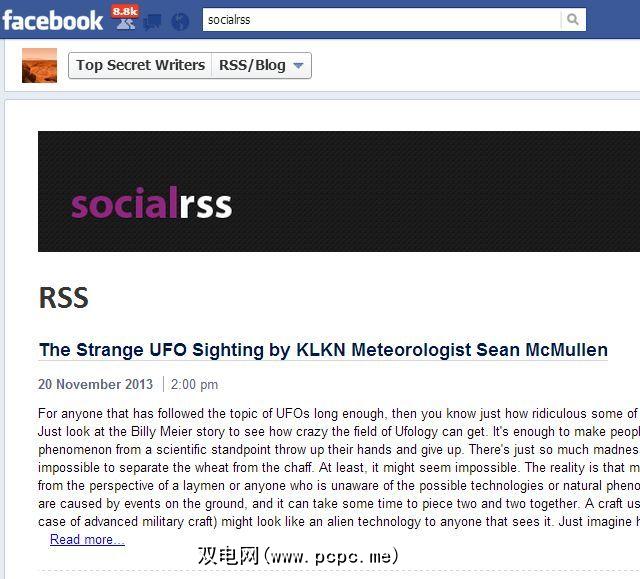 读者只需单击Facebook粉丝页面上的RSS标签即可获得此内容。