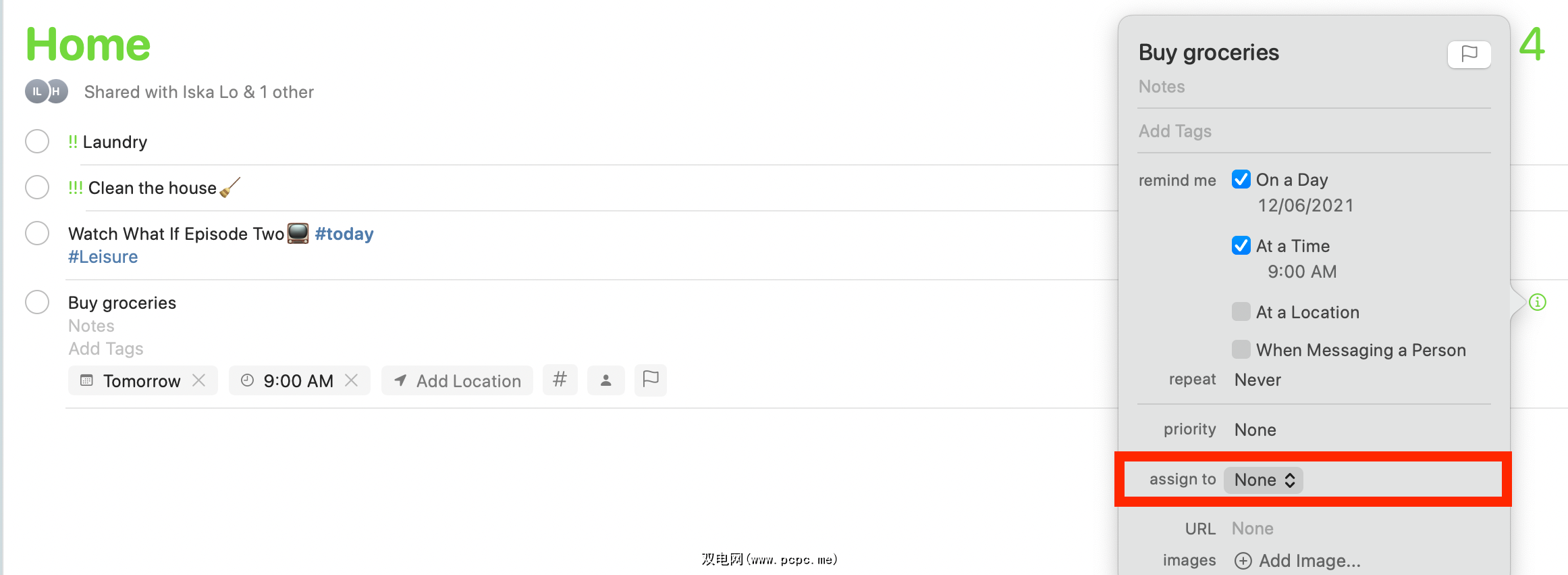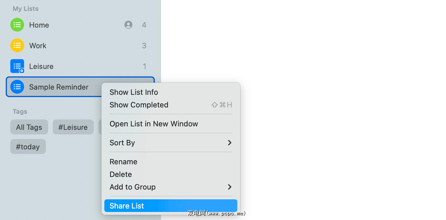 现在您已经共享了 iCloud 提醒事项列表,您可以将任务分配给其他人。首先,在侧边栏中选择共享列表;如果旁边有个人图标,您就会知道它是一个共享列表。然后执行以下操作之一: