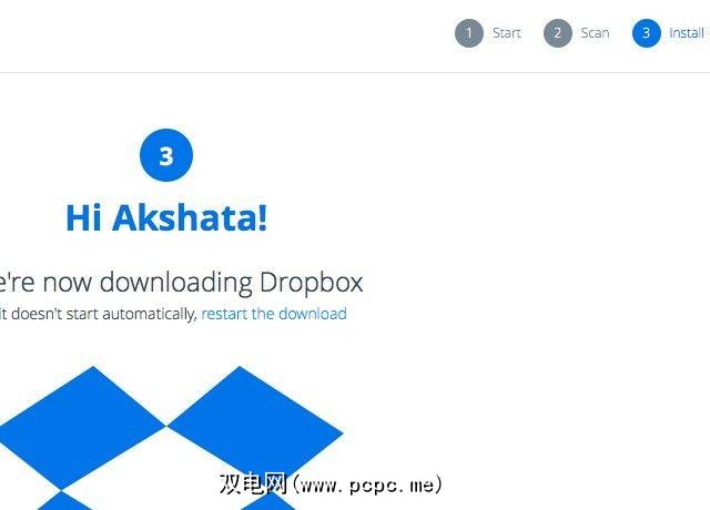 现在单击移动Dropbox中出现的 Next 按钮应用程序,然后将手机指向QR码。该应用程序扫描代码并触发在桌面上下载Dropbox安装程序。