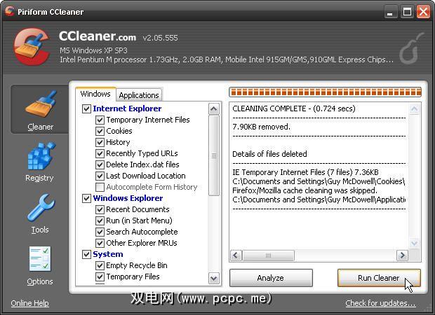 CCleaner将打开。那很好。现在,点击运行清洁程序,然后等待它完成工作。然后,关闭CCleaner。