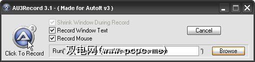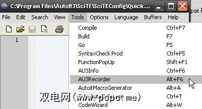 一旦打开SciTE,请单击工具> AU3Recorder 。这将打开AU3Record 3.1。