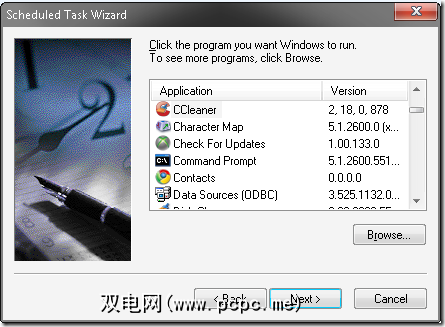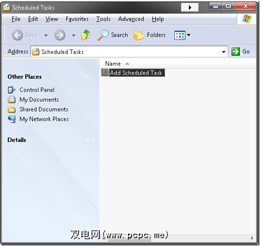 任务列表概述如下。从开始菜单>程序>附件>系统工具>计划任务中将其打开。双击“添加计划任务"以打开向导。
