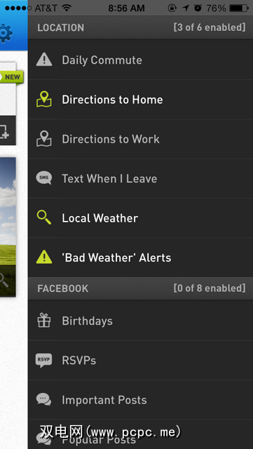 要使用EasilyDo,请将应用程序连接定向到您的电子邮件,社交网络和云存储帐户,例如iCloud,Gmail,Dropbox和Evernote。 EasilyDo使用这些连接来执行您选择和启用的各种操作。例如,您可以启用一项操作,其中,当您离家一英里多时,EasilyDo将自动提供以获取地图方向。