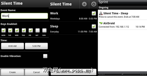 如果您每周都有固定的时间表并且确切知道当您需要使手机静音时,“静音时间"可能会满足您的需求。这是一个小型且简单的应用程序,可让您在需要将手机静音时为特定事件分配时间。