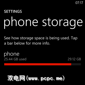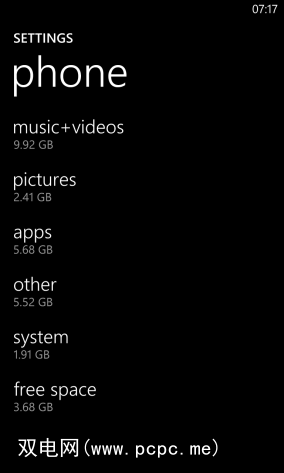 点击存储栏,以显示各种媒体类型(如图片或音乐+视频)所用的存储量,可以找到更多详细信息。现在您知道正在使用多少存储空间,可以根据需要进行准备,以管理PC上的空间。例如,您可能尚未将手机与计算机同步。这可以使用Windows Phone同步工具完成。