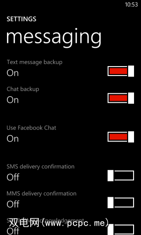 在设置>备份屏幕中,文本消息选项也是,可以在其中切换各种通知和设置。列表中的第一个是短信备份,然后是聊天备份。要保留这些对话的记录,请点击开关,将其设置为打开。