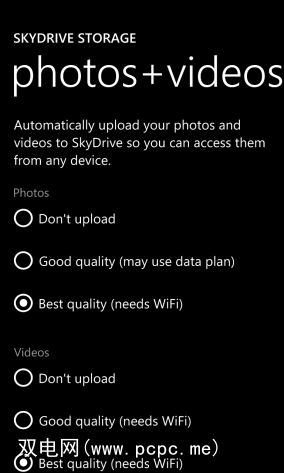 还存在用于备份数据的其他选项。事实证明,云存储对世界各地的用户来说非常有价值,Windows Phone可以将您的照片和视频自动上传到SkyDrive!