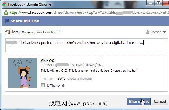 因此,就像我父亲的榜样一样,我会在她的照片上留下评论-鼓励她并称赞她。当然,我将在我自己的Facebook墙上分享它,以确保她了解我对自己的创造力感到多么自豪。