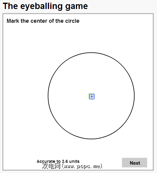 接着上一个挑战问您标记一个大圆圈的中心。您会看到一个完美的圆圈,并要求您正确判断中心点应该在哪里。