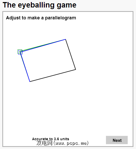 我第一次玩“眼球游戏"不是确定什么是平行四边形,所以我对正确位置的猜测非常不准确。解决这一难题的最简单方法是,平行四边形具有两组平行线。
