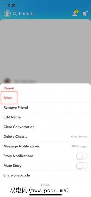 有您可以通过多种方式找到此菜单。您还可以向右轻扫以进入“朋友"列表,然后向下滚动直到找到您要阻止的人。