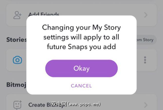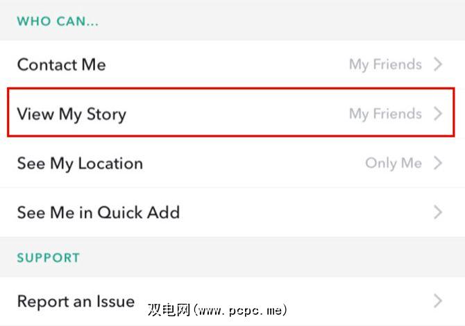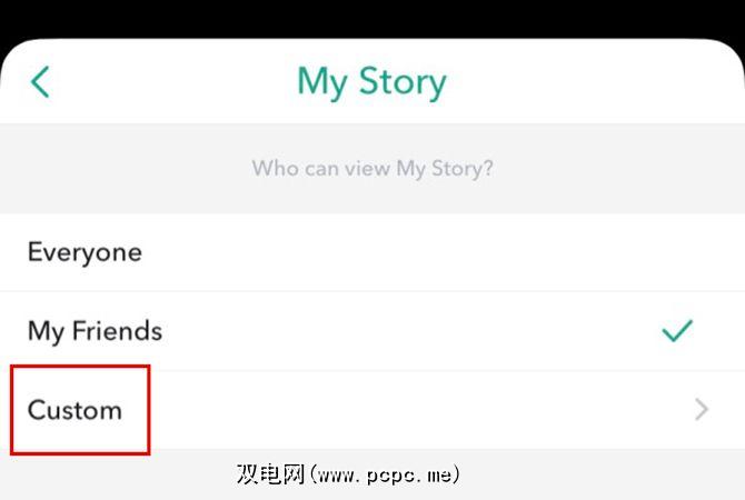 一旦您进入故事设置,您就可以调整哪些人可以看到您的Snapchat故事。 所有人表示您的故事是公开的。
