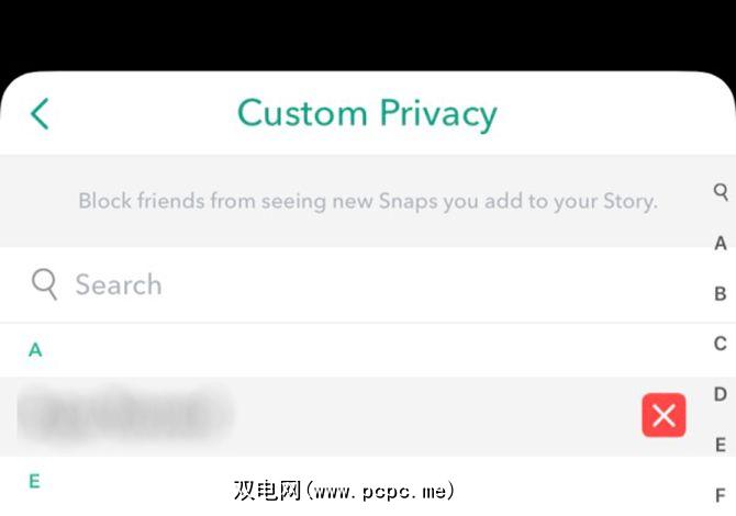 在自定义内部,您会找到自定义隐私。在这里,您可以滚动浏览好友列表,并选择了解和了解谁的人。不过,他们仍然可以在这些故事之外与您联系。