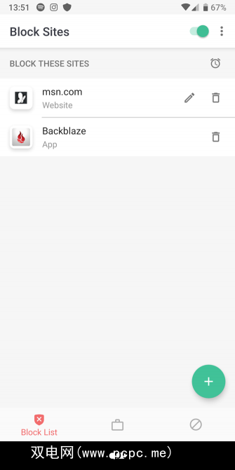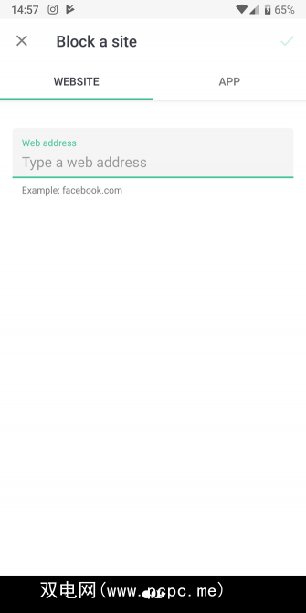 安装该应用程序后,您需要授予其访问权限,以正确阻止网站。要屏蔽网站,请点击主屏幕上的加按钮。只需输入一个网址,然后点击右上角的选中标记即可保存它。现在,当您尝试使用任何浏览器访问该网站时,就会发现该网站已被阻止。