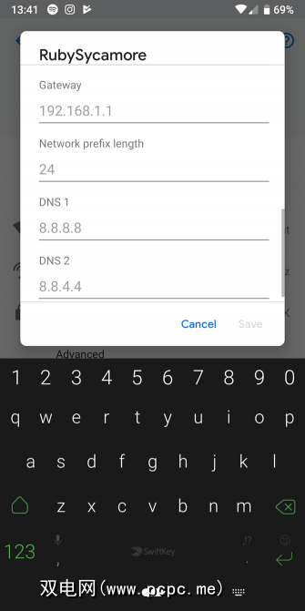 在出现的窗口中,展开高级选项,然后向下滚动。将 IP设置从 DHCP 更改为静态。然后在 DNS 1 和 DNS 2 字段中分别输入 208.67.222.123 和 208.67.220.123 。保存设置。完成后,请访问internetbadguys.com,以确保一切设置正确。