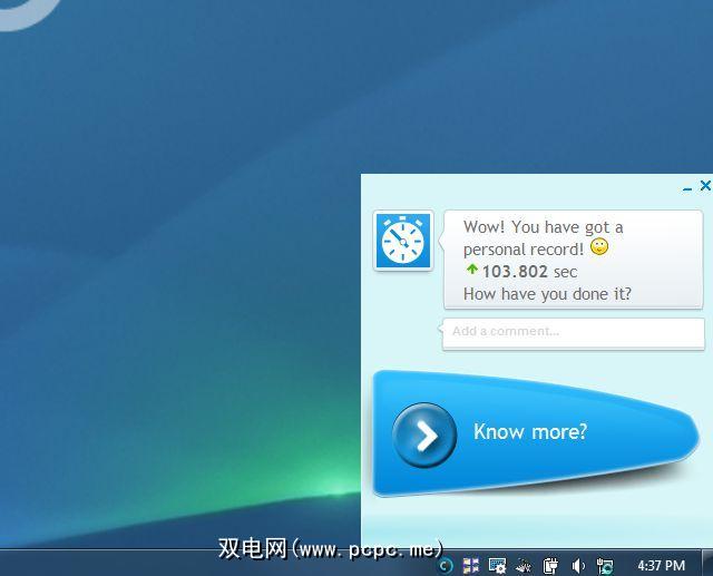 单击启动时间测试,程序将重新启动PC。重新启动后,您将在桌面的右下角看到以下计时器弹出窗口。