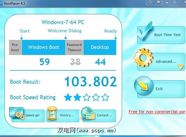 使用BootRacer,一个启动改进工具,您可以逐步获取实际启动时间的快照,使用MSConfig进行调整,然后再次运行另一个BootRacer测试。这项技术使您能够排除故障,排除故障,缩小困扰PC启动时间的原因,并最终修复PC,使其像全新启动时一样启动。