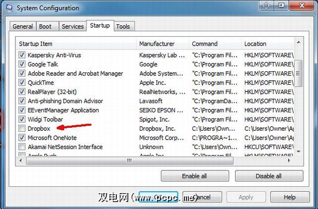 此选项卡将列出您可能已经忘记的所有已安装应用程序。这些程序可能包含您甚至没有意识到软件附带的启动元素。作为第一个测试,我只选择了一个应用程序–我的DropBox连接,该连接在PC每次启动时都会进行连接–以测量是否删除该应用程序对启动时间是否有任何影响。