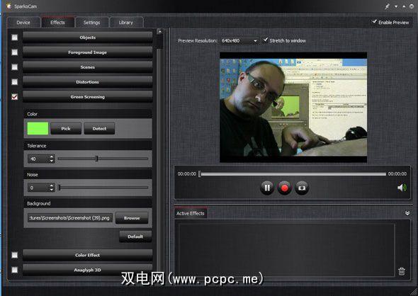 要添加绿屏,请移至 Effects < / em>标签(下一个)。请先选择背景,否则您将不知道它的工作时间。通过点击检测,该应用程序能够自动添加正确的颜色,并且筛查的质量实际上是非常好的–这次无需进行任何调整。不幸的是,它的局限性在于您只能使用静态背景图像-您不能广播桌面或将其叠加在其他视频的顶部。