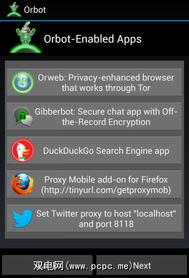 Orbot是此难题中最重要的部分。此Android应用程序连接到Tor并创建一个本地代理,智能手机上的其他应用程序可以使用该本地代理,从而允许它们通过Tor进行连接。