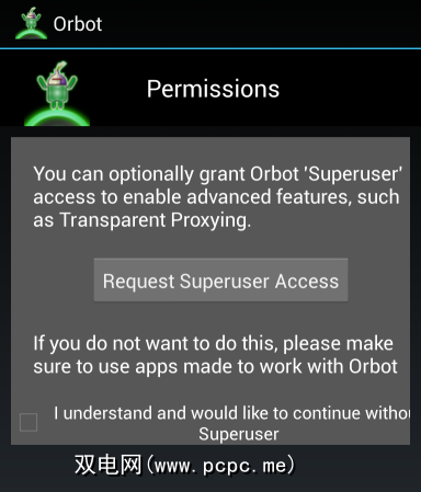 如果您具有智能手机的root访问权限,则Orbot可以充当透明代理。换句话说,它可以自动强制所有网络流量通过Tor。如果您采用这种方法,请记住某些应用程序可能会泄漏您的真实IP地址。要真正进行匿名浏览,您应该使用旨在隐藏您的IP地址的浏览器。如果您没有root用户访问权限,那也很好-您仍然可以将Orbot与Orweb和其他应用程序一起使用。