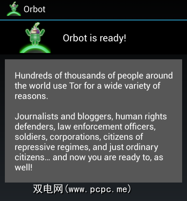 无论您是否连接到蜂窝数据连接或Wi-Fi,Orbot都可以正常工作。就像PC上的Tor浏览器捆绑包一样,它连接到Tor网络,并允许您匿名浏览Web。