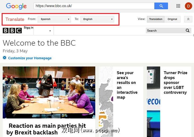 例如,在上图中,您可以在BBC主页上看到我将来源设置为西班牙语。只要将输出语言设置为英语,就可以使用。