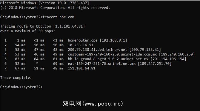 您可以通过以管理员身份打开“命令提示符",然后键入 tracert ,然后按,找到站点的IP地址。域名,例如 tracert bbc.com 。
