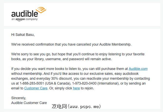 您的原因可能不在上面的候选清单中,但是Audible使得单击几下即可取消订阅。