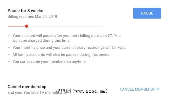 点击该链接后,您会看到暂停或取消会员资格的选项。选择取消会员,然后再次确认选择以取消您的YouTube电视订阅。