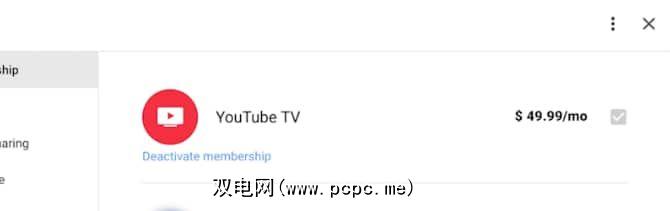 在下一页上,单击会员资格。现在,在屏幕右侧的帐户设置中,您应该可以看到YouTube电视的会员资格。在其正下方的标签为停用会员资格的链接。