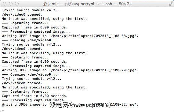 仍然在SSH命令行上,我们将尝试直接在Pi上拼接电影-如果您已经拍摄了数千张照片并且您的网络摄像头分辨率更高,您可能会发现这很慢,在这种情况下,请滚动至DSLR的电影说明,然后使用SFTP将文件传输到PC。