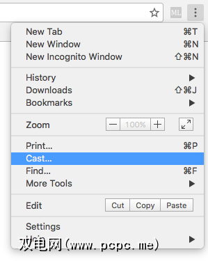 操作非常简单。下拉选项菜单(带有汉堡图标),然后选择新提供的 Cast 操作。