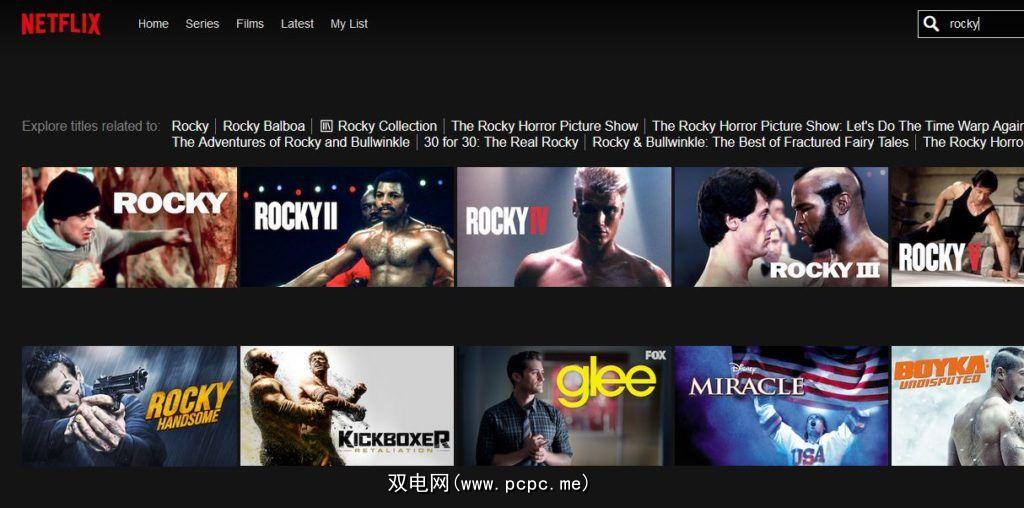 例如,连接到美国的服务器,我们可以可以访问测试国家(德国)在Netflix上不可用的所有“ Rocky"电影。