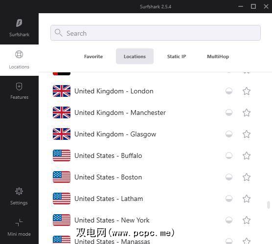 现在,您可以开始使用VPN客户端了。登录后,在应用程序中查找名为位置或国家/地区的部分。在这里您可以选择要连接的VPN服务器。